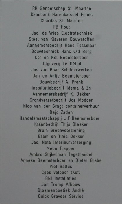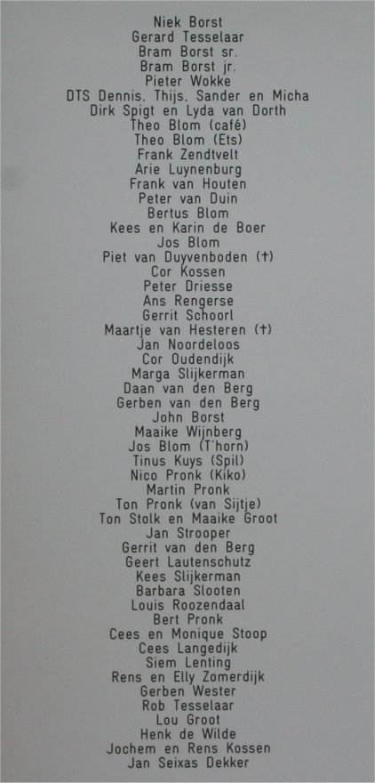 On behalf of the family in America, and representing the visiting delegation, Jill Eenigenburg presented a gift of funds, and an engraved wall plaque with the following inscription in both Dutch and English: