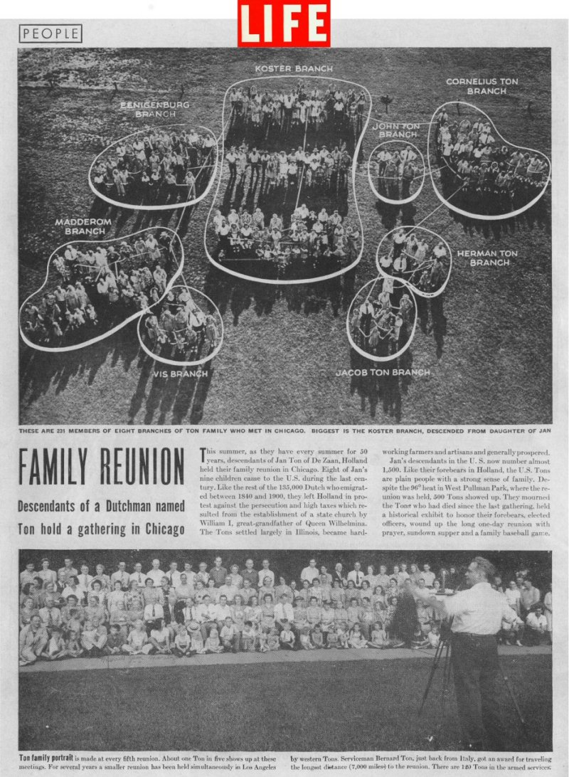 The Ton Family 50th Reunion received national recognition in LIFE Magazine during WWII.