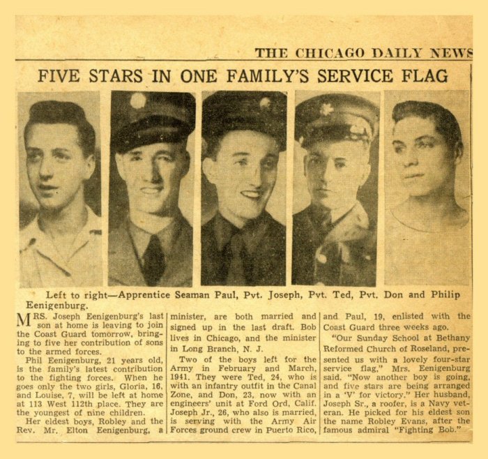 While numerous members of the family served in WWII, the family was recognized in the media in a couple of interesting ways: